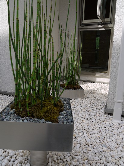 アプローチから続く坪庭には、こだわりの水鉢に水と光が乱反射して、何とも言えない癒しの空間に仕上がっています。